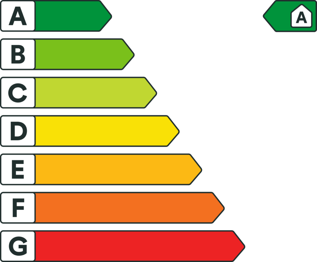 • En energikarakter (A–G) som viser hvor energieffektivt bygget er sammenlignet med dagens standard.